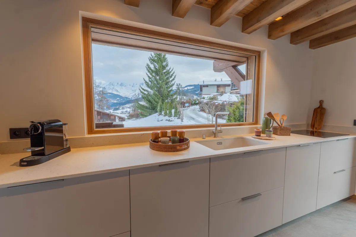 Le bel étage est le lieu de vie principal, lumineux et spacieux. Vous y trouverez un séjour confortable, une salle à manger chaleureuse et une cuisine moderne, parfaite pour préparer vos repas. L’accès au garage et au vestiaire facilite votre arrivée et votre organisation. Depuis cet étage, profitez d’une vue spectaculaire sur le Mont-Blanc depuis la terrasse ou le salon doté d’une cheminée pour des soirées au coin du feu.